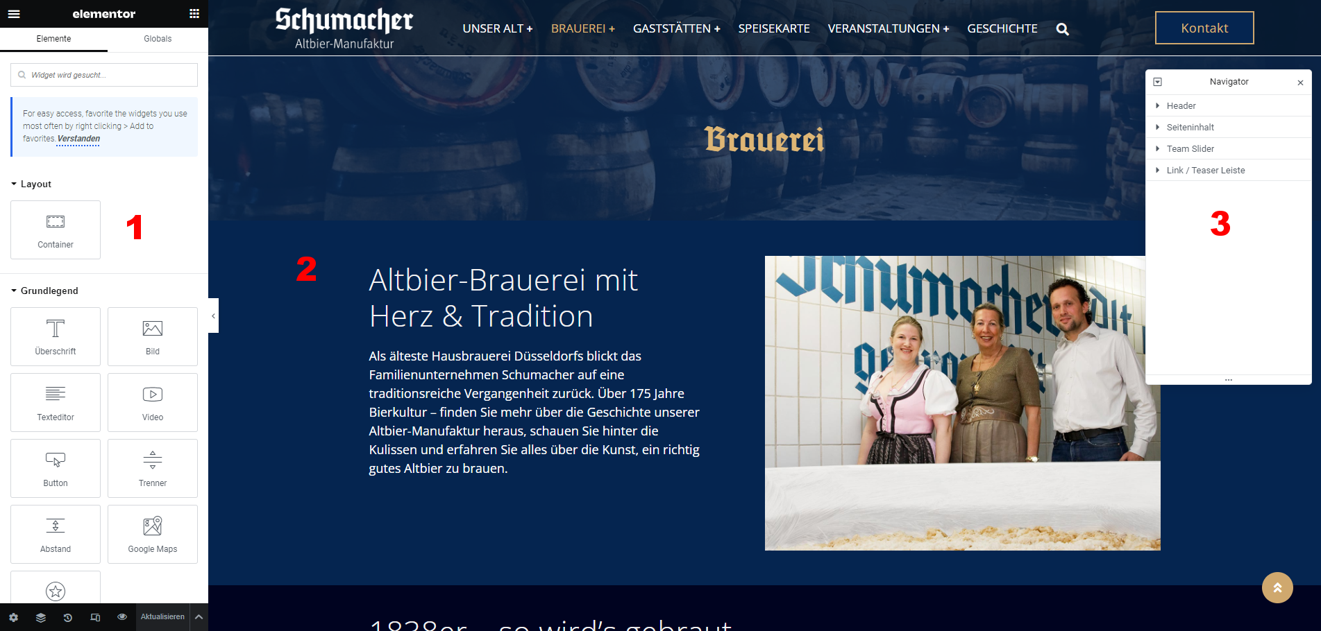 Seiten in Elementor bearbeiten
