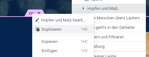 Dort hat man die Möglichkeit, den Abschnitt zu kopieren und an anderer Stelle einzufügen oder direkt zu duplizieren. |