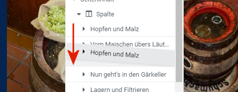 Mit Drag & Drop kann man die Position bzw. Reihenfolge des Abschnitts ändern. Dazu einfach mit der Maus den Abschnitt anklicken und gedrückt halten und nach unten oder oben ziehen.