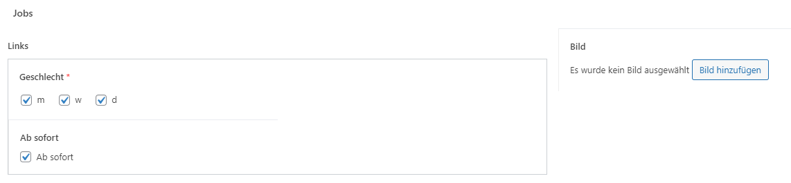 Die Basis-Details des Jobs, also Titel und Beschreibung, können im Hauptbereich eingegeben bzw. bearbeitet werden.